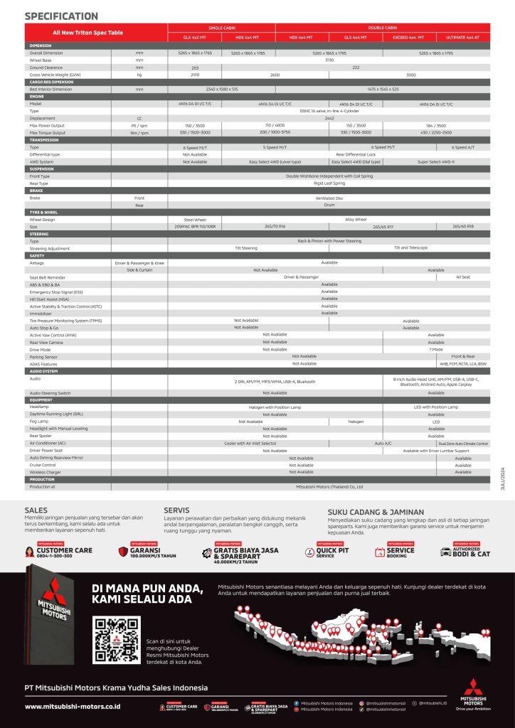 | ALL NEW TRITON DC GLS 4X4 MT | 452.550.000 |